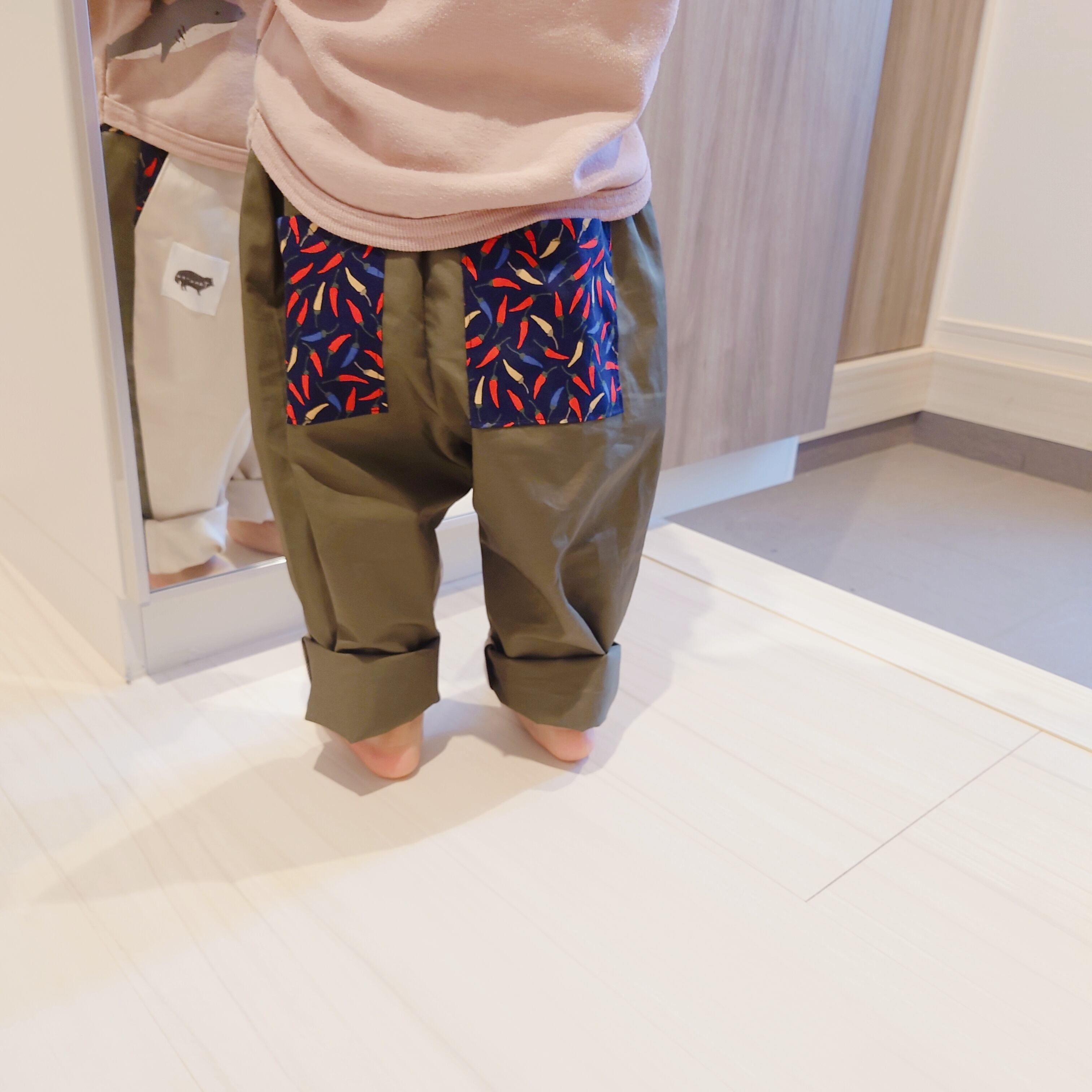 唐辛子カラーパンツ(90~140) クリーム×カーキ お揃いコーデ おそろいコーデ お揃い服 おそろい服 兄弟 姉妹 カラフル 個性的 リンクコーデ