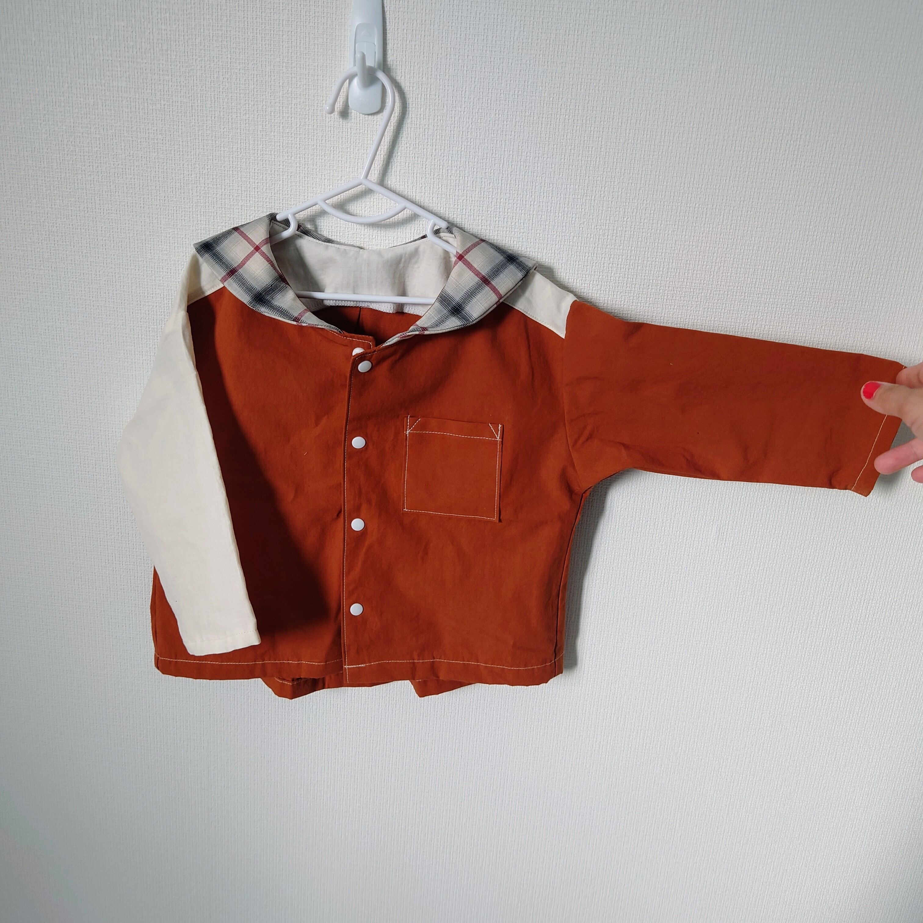 バイカラーセーラーシャツ(90~140) テラコッタ 兄弟 姉妹 お揃いコーデ おそろいコーデ お揃い服 おそろい服 リンクコーデ 個性的 カラフル