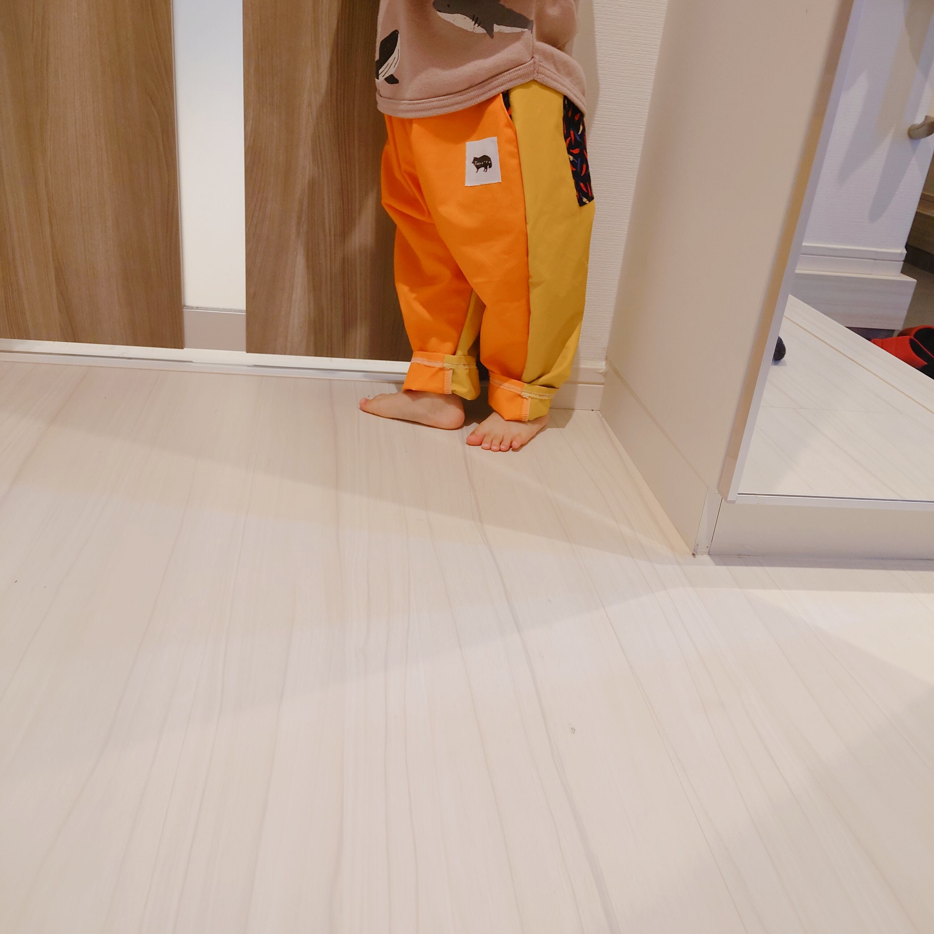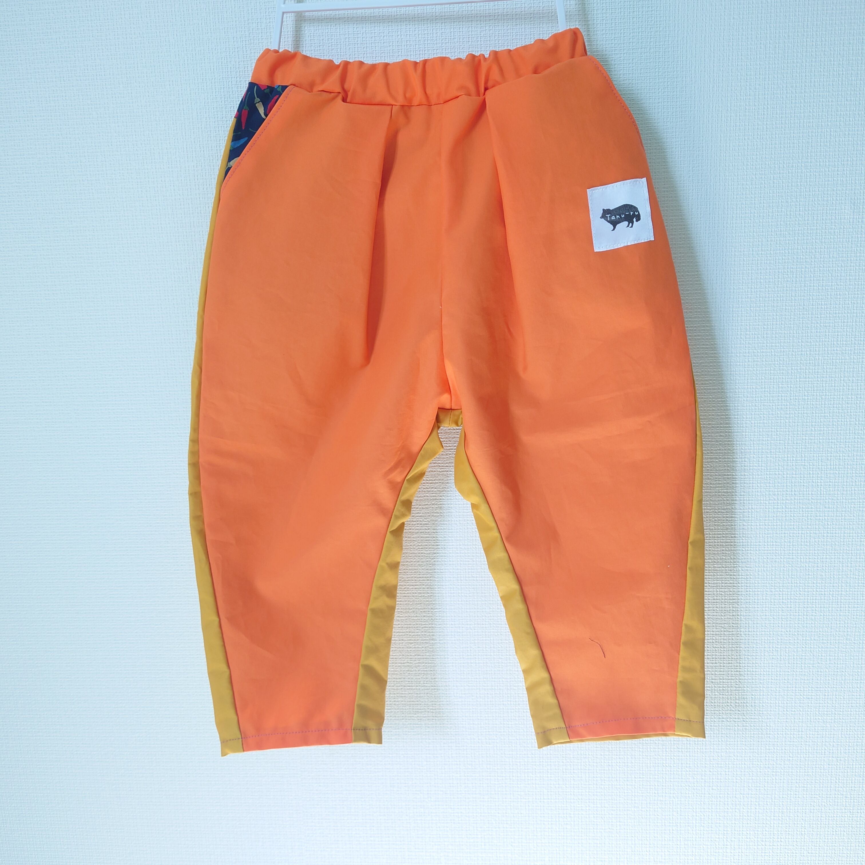 唐辛子カラーパンツ(90~140) オレンジ×イエロー お揃いコーデ おそろいコーデ お揃い服 おそろい服 兄弟 姉妹 カラフル 個性的 リンクコーデ