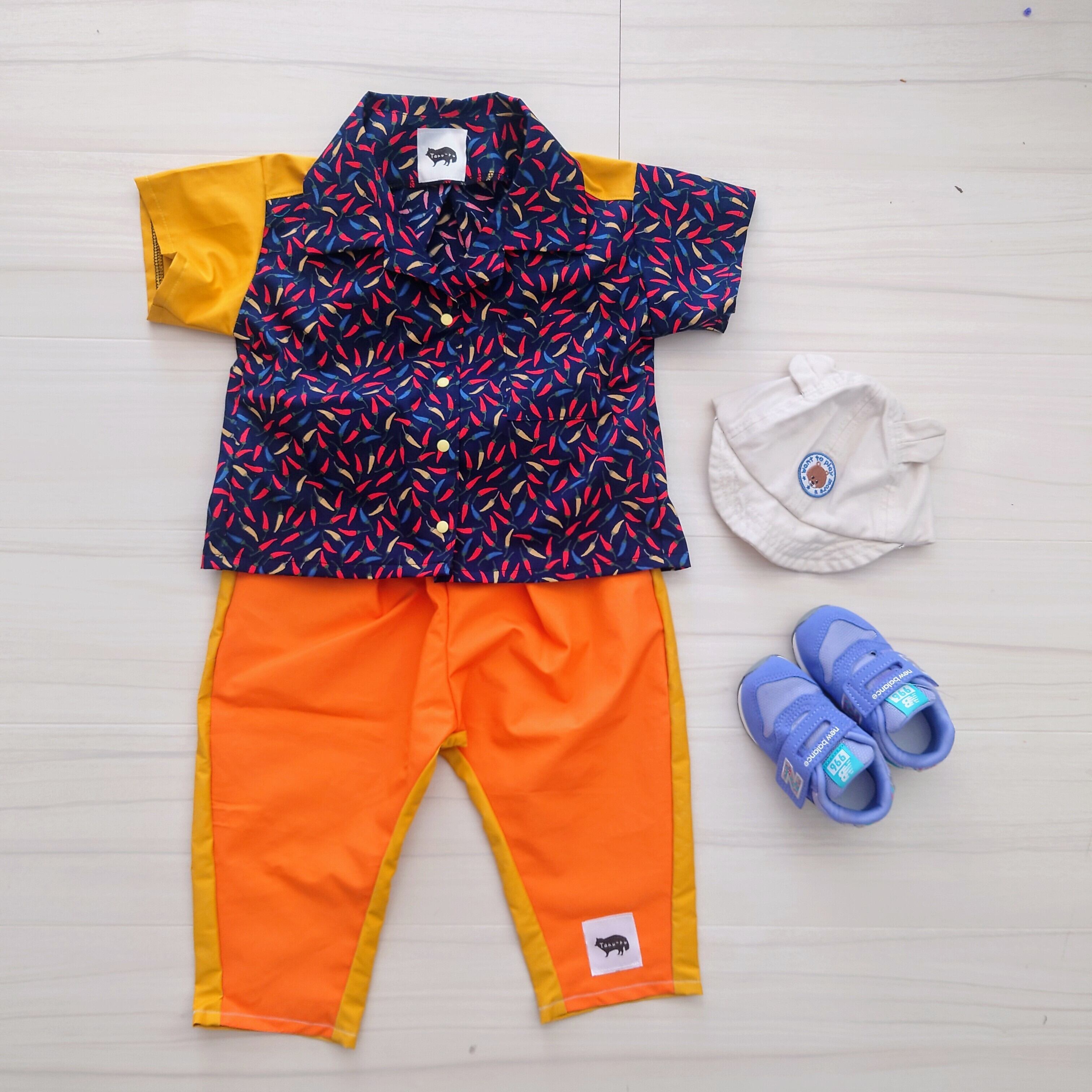 唐辛子カラーシャツ (90cm~140cm) お揃い おそろい リンクコーデ 兄弟 姉妹 個性的 アロハシャツ 襟付きシャツ 半袖シャツ カラフル 子供服 イエロー