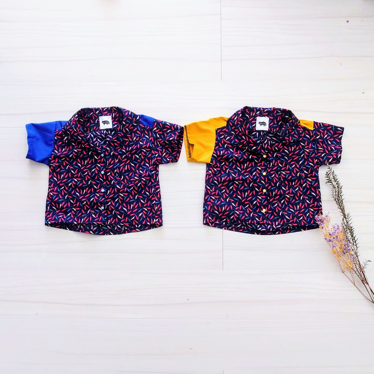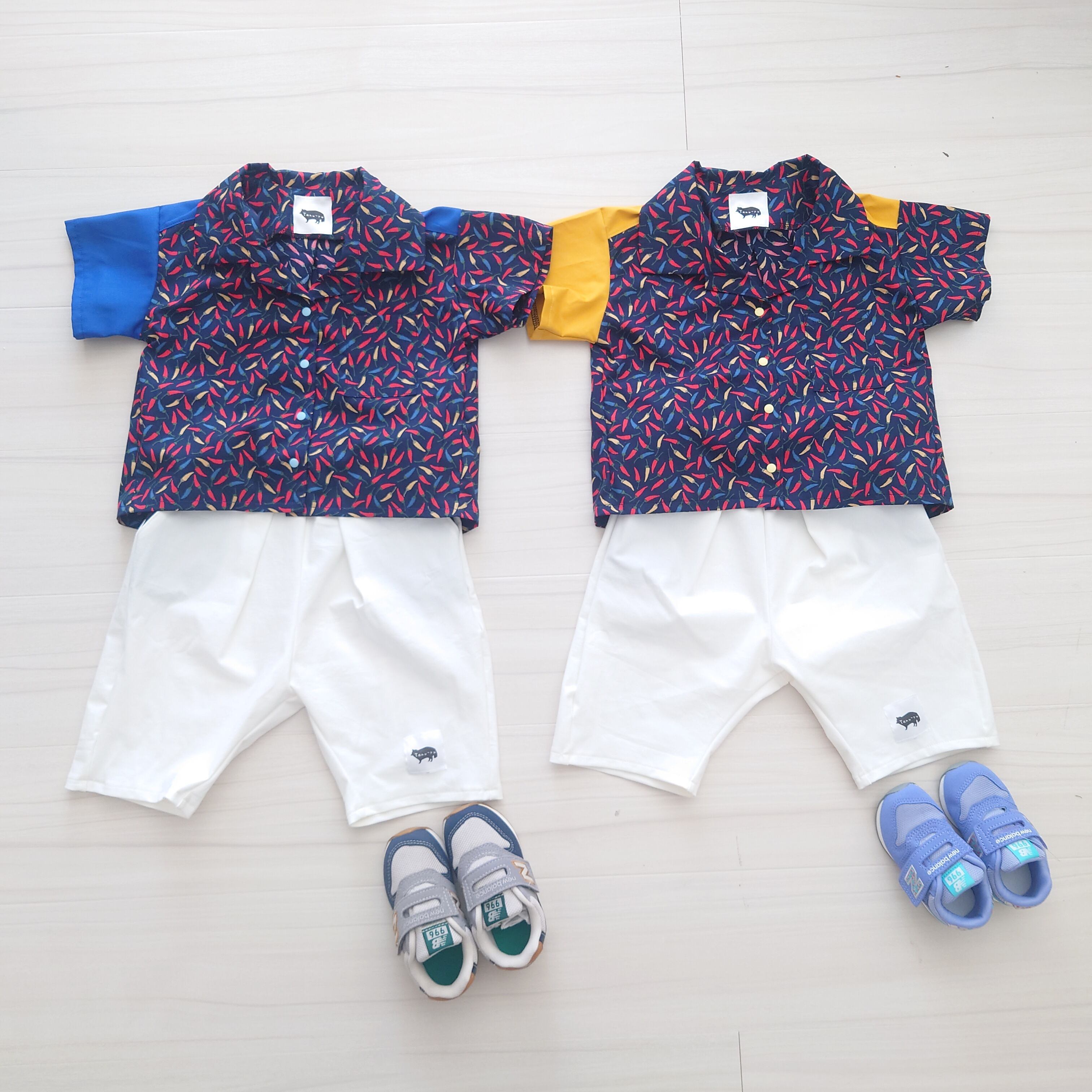 兄弟 姉妹 兄妹 姉弟 お揃いコーデ おそろいコーデ お揃い服 おそろい服 リンクコーデ 個性的 襟付きシャツ シャツ ジェンダーレス シャツ 長袖シャツ 半袖 襟 シャツ 子供服 アシンメトリー バイカラー 90cm 100cm 110cm 120cm 130cm 140cm