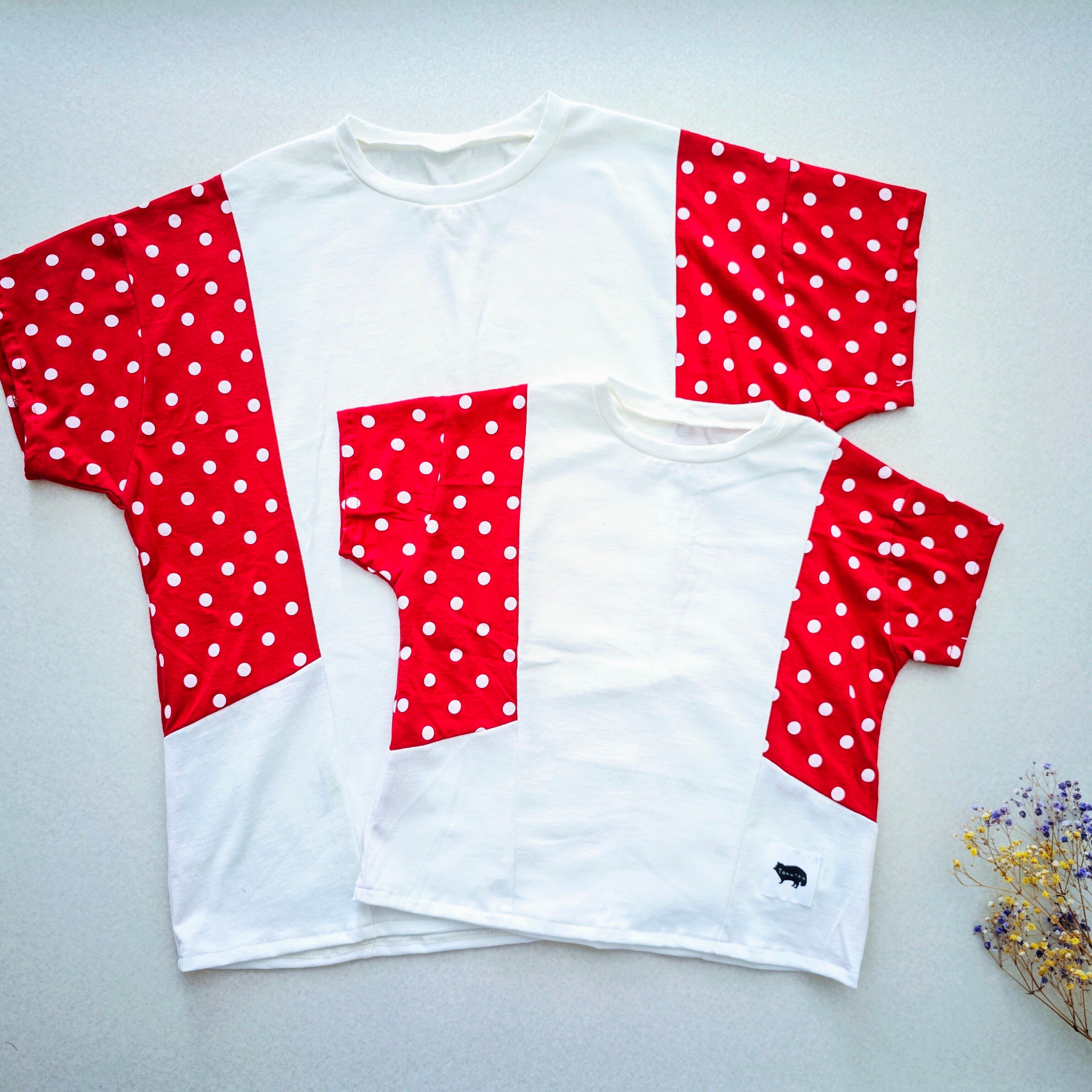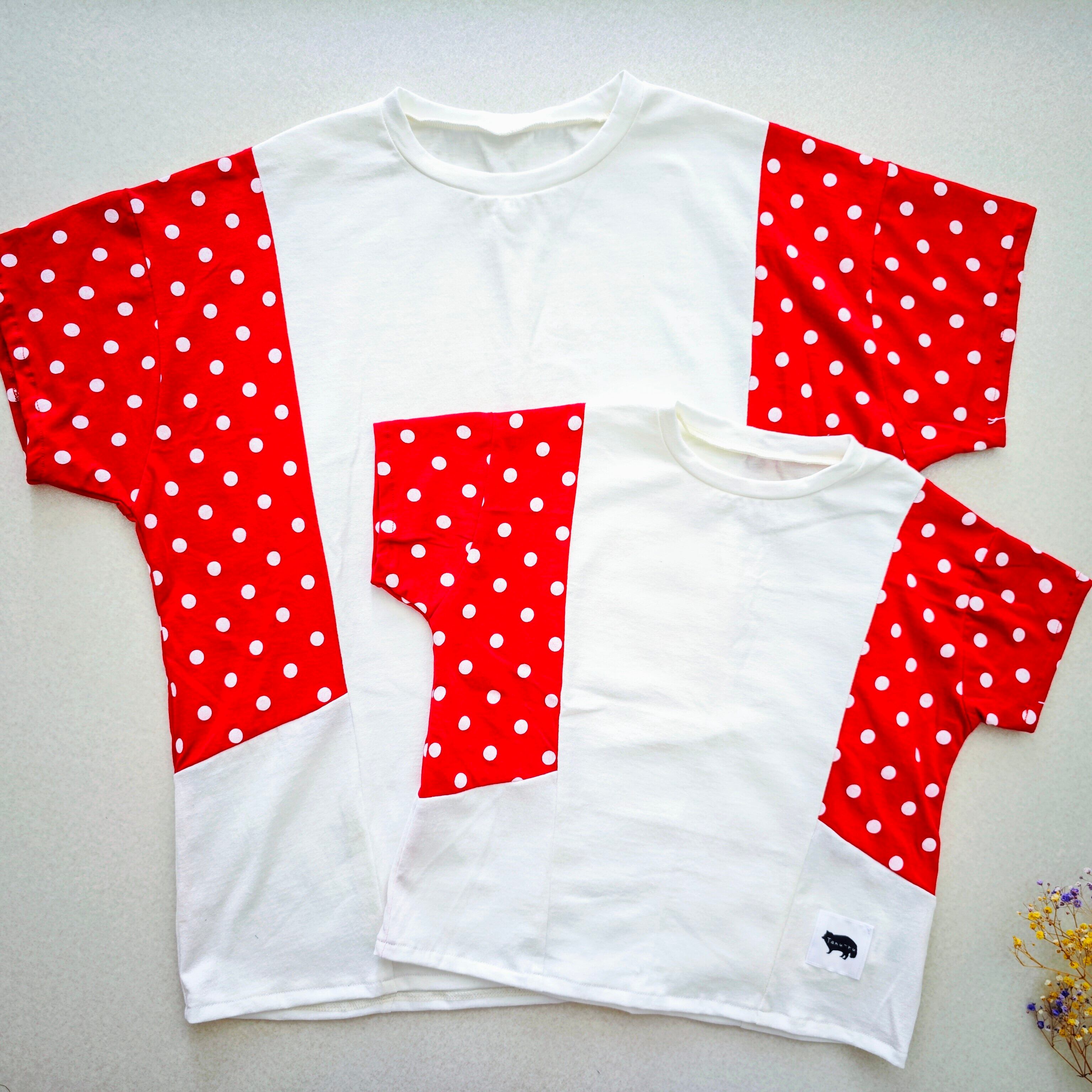 お揃い服 大人服 子供服 ドット柄 Tシャツ レッド リンクコーデ おそろいコーデ